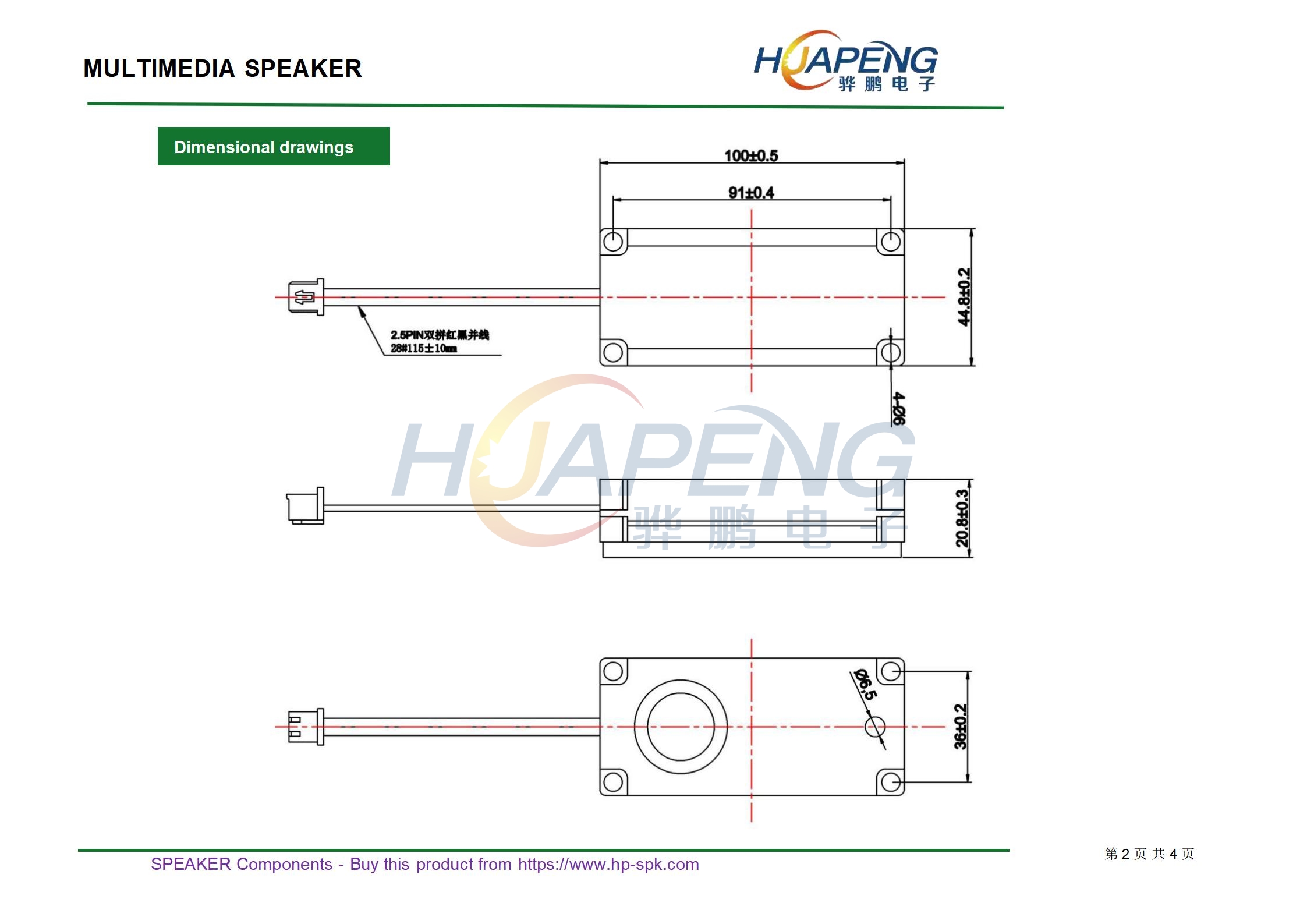 规格:3080BOX4Ω3W 带4P端子线喇叭