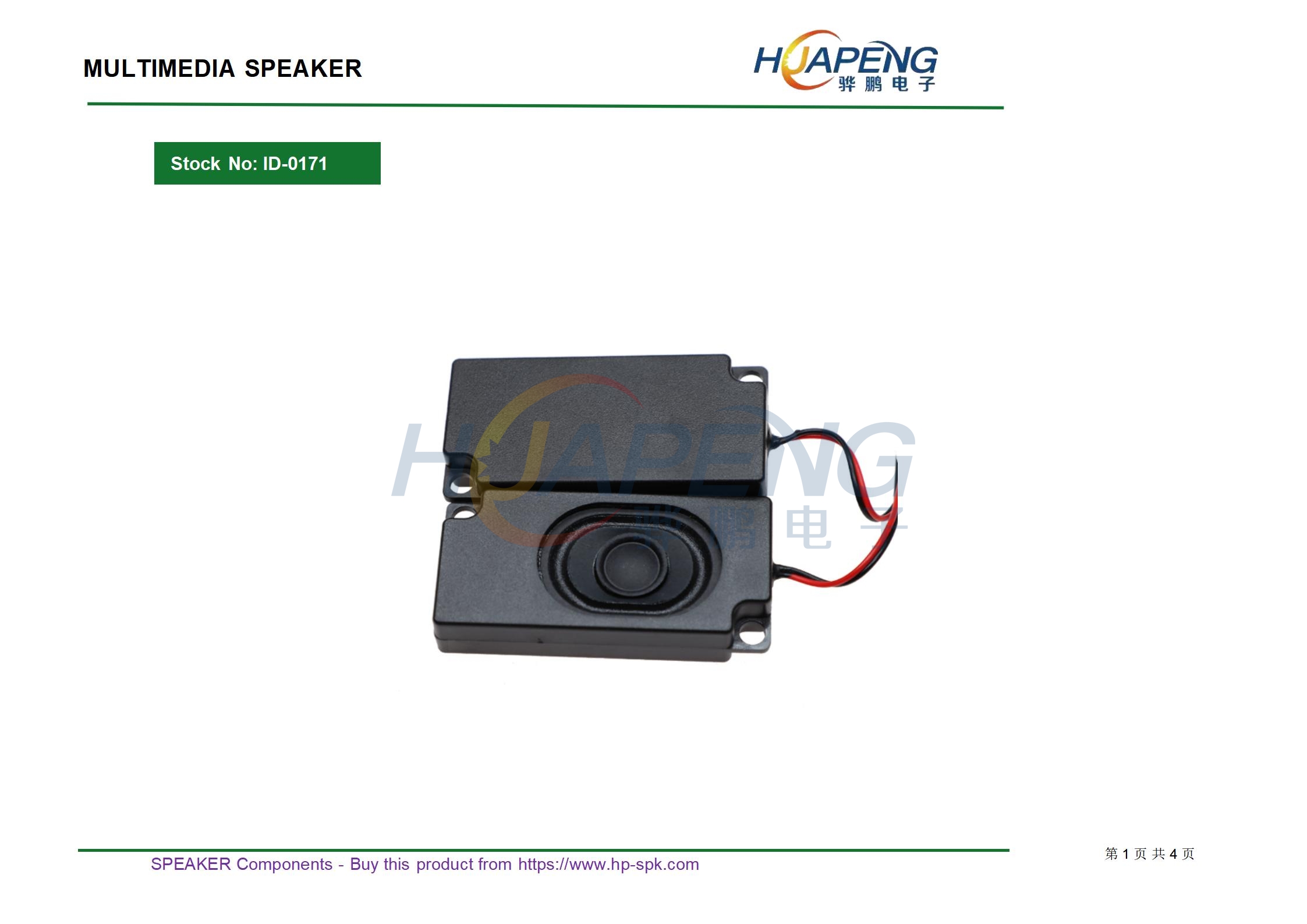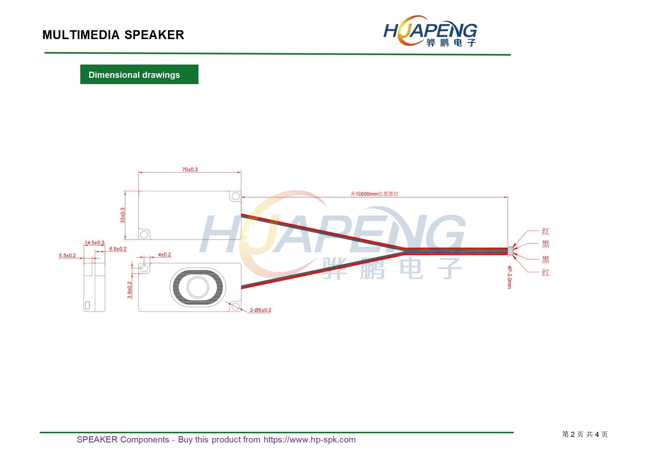 规格:3370BOX4Ω3W带4P端子线