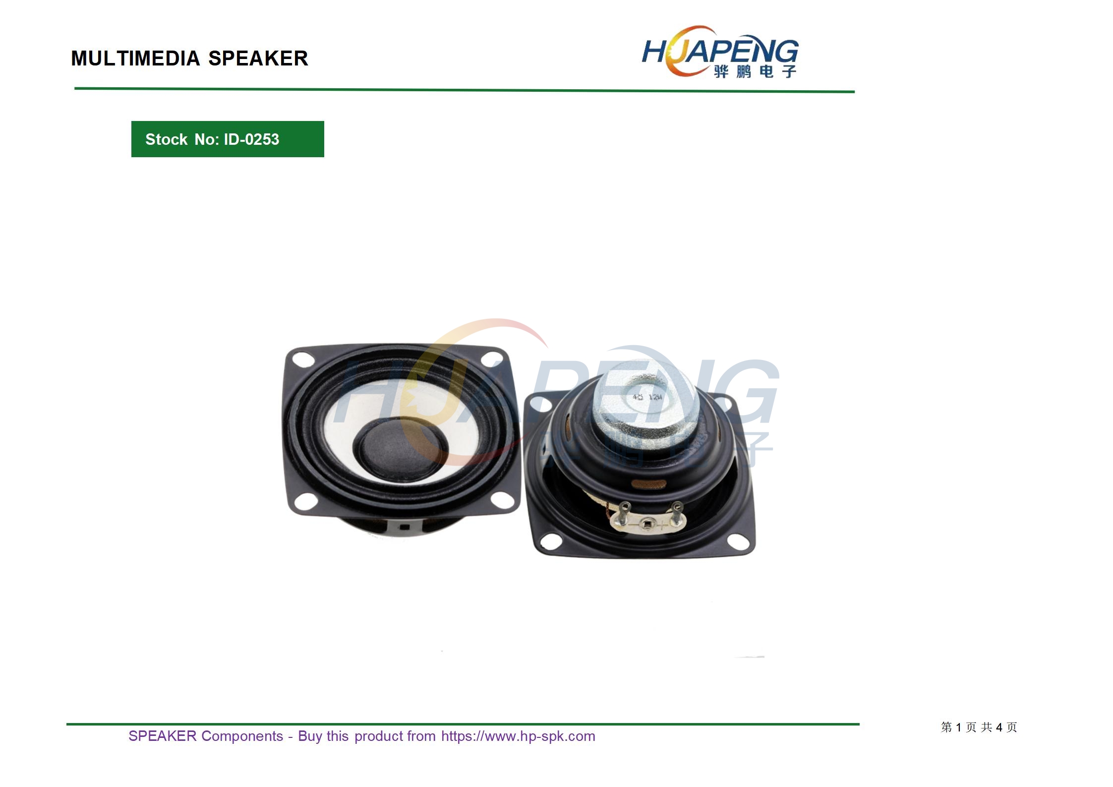 规格:方形40mmH21mm4Ω5W PU边双磁黑亮帽喇叭