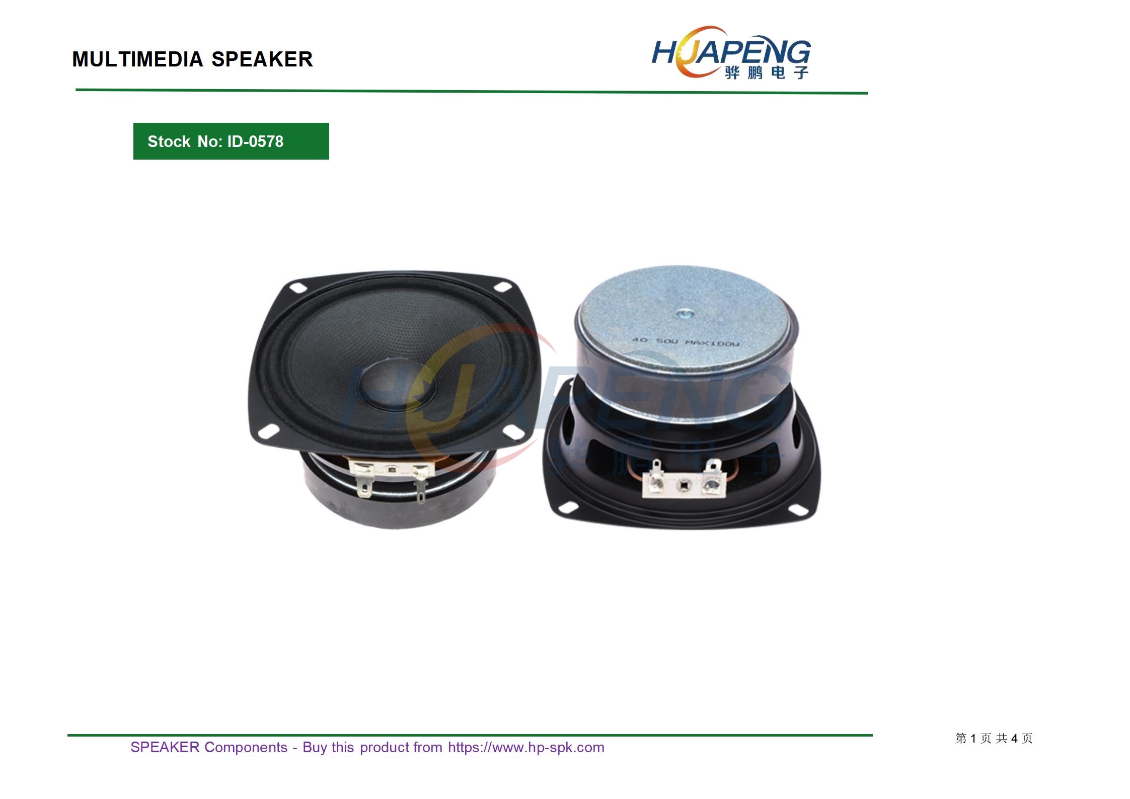 规格:方形40mmH21mm4Ω5W PU边双磁黑亮帽喇叭