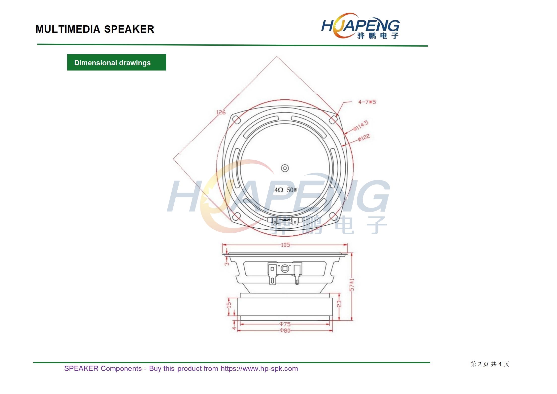 规格:φ36mmH15mm4Ω3W PU边纸帽喇叭