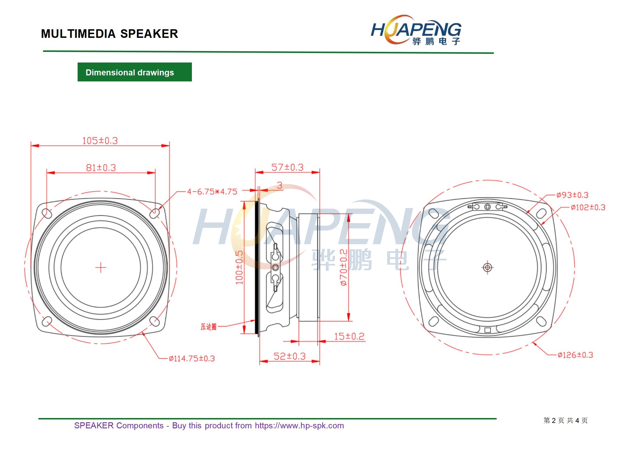 规格:4寸4Ω30W橡胶边松压鼓纸喇叭