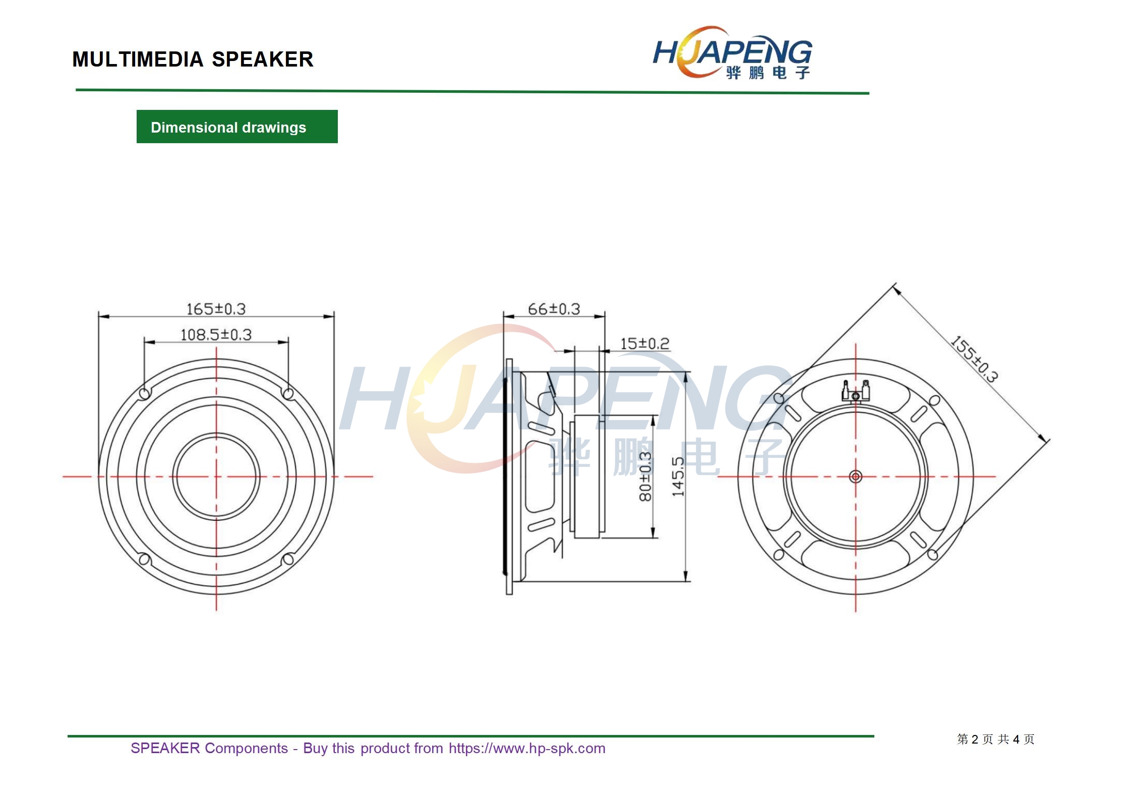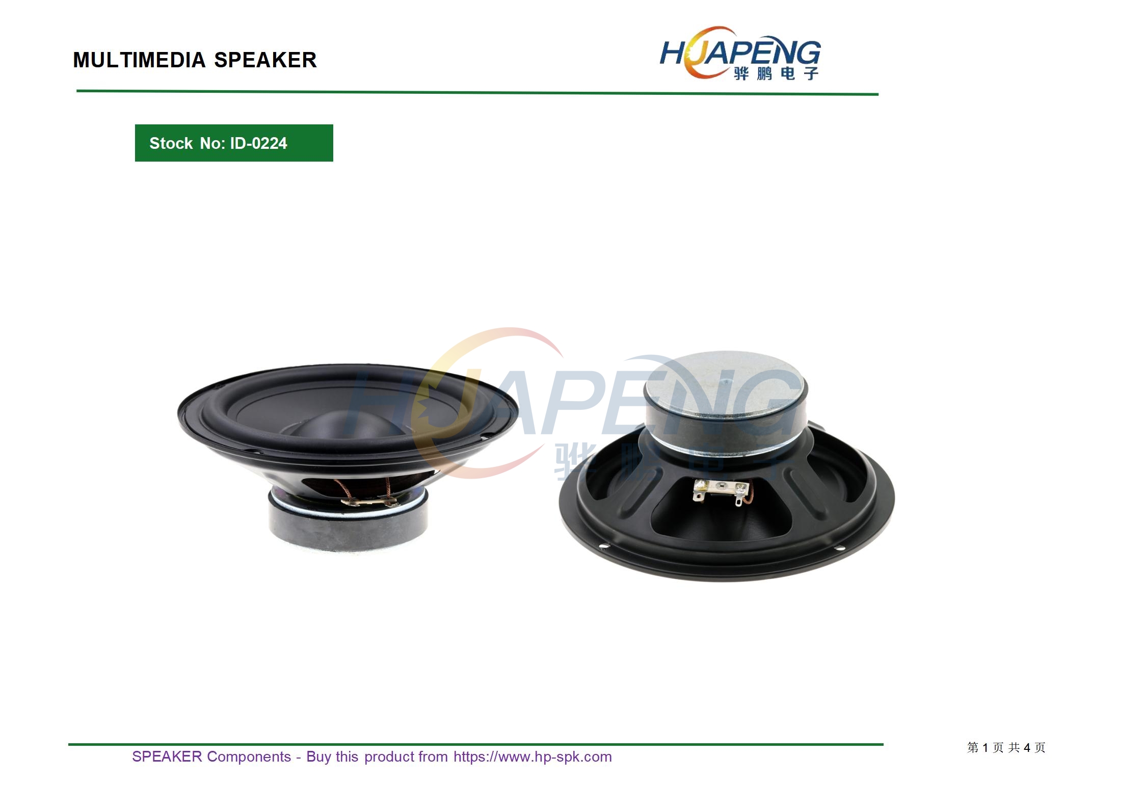 规格:4寸4Ω30W橡胶边松压鼓纸喇叭
