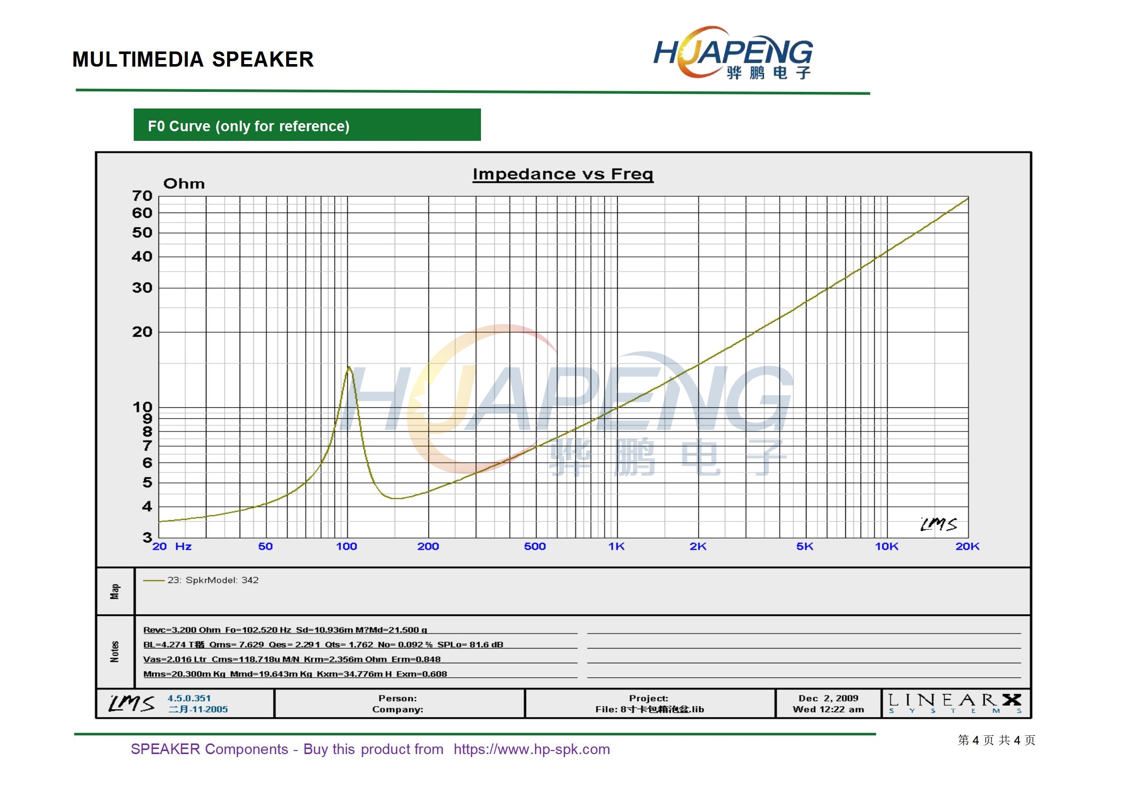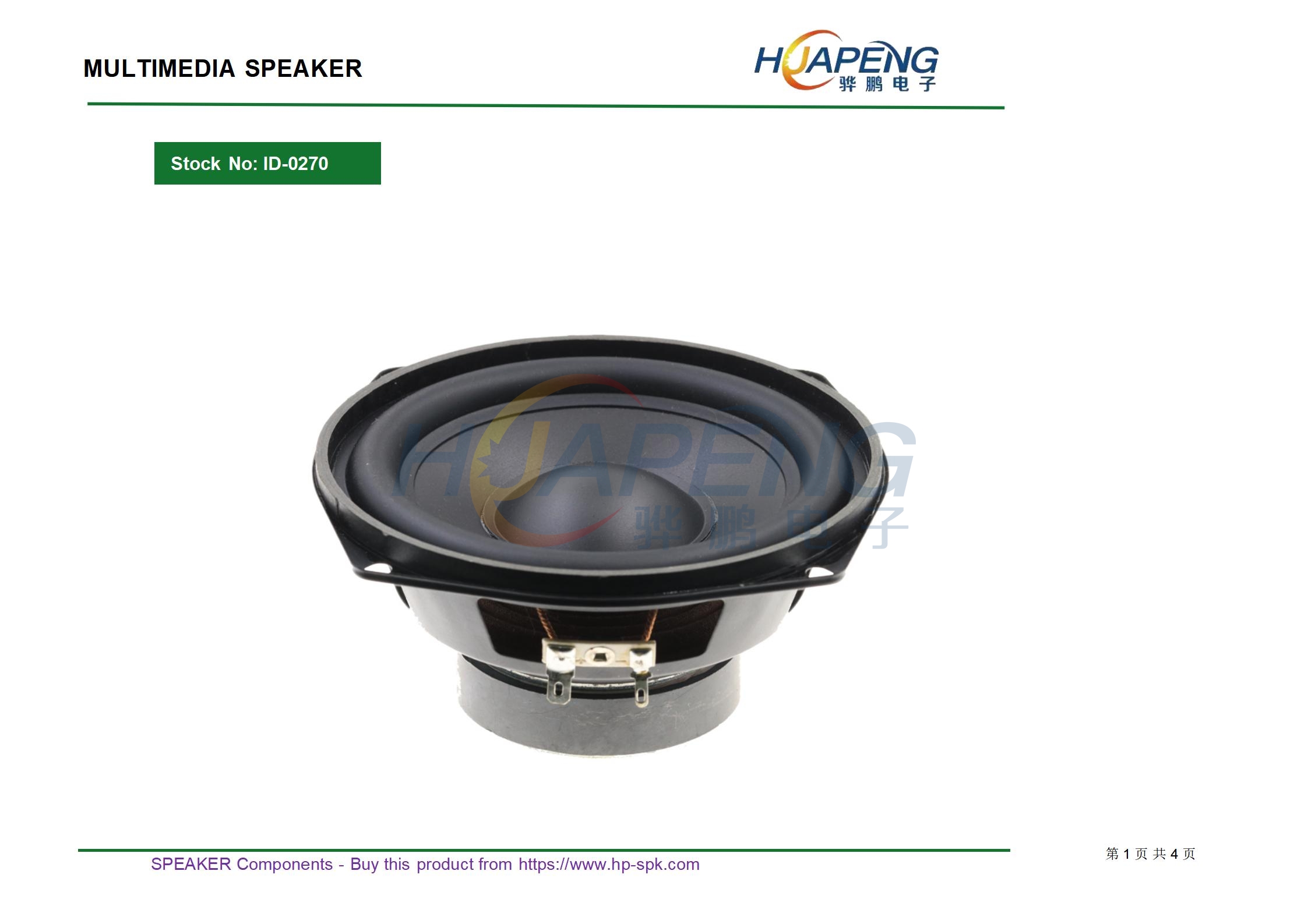 规格:4寸4Ω30W橡胶边松压鼓纸喇叭