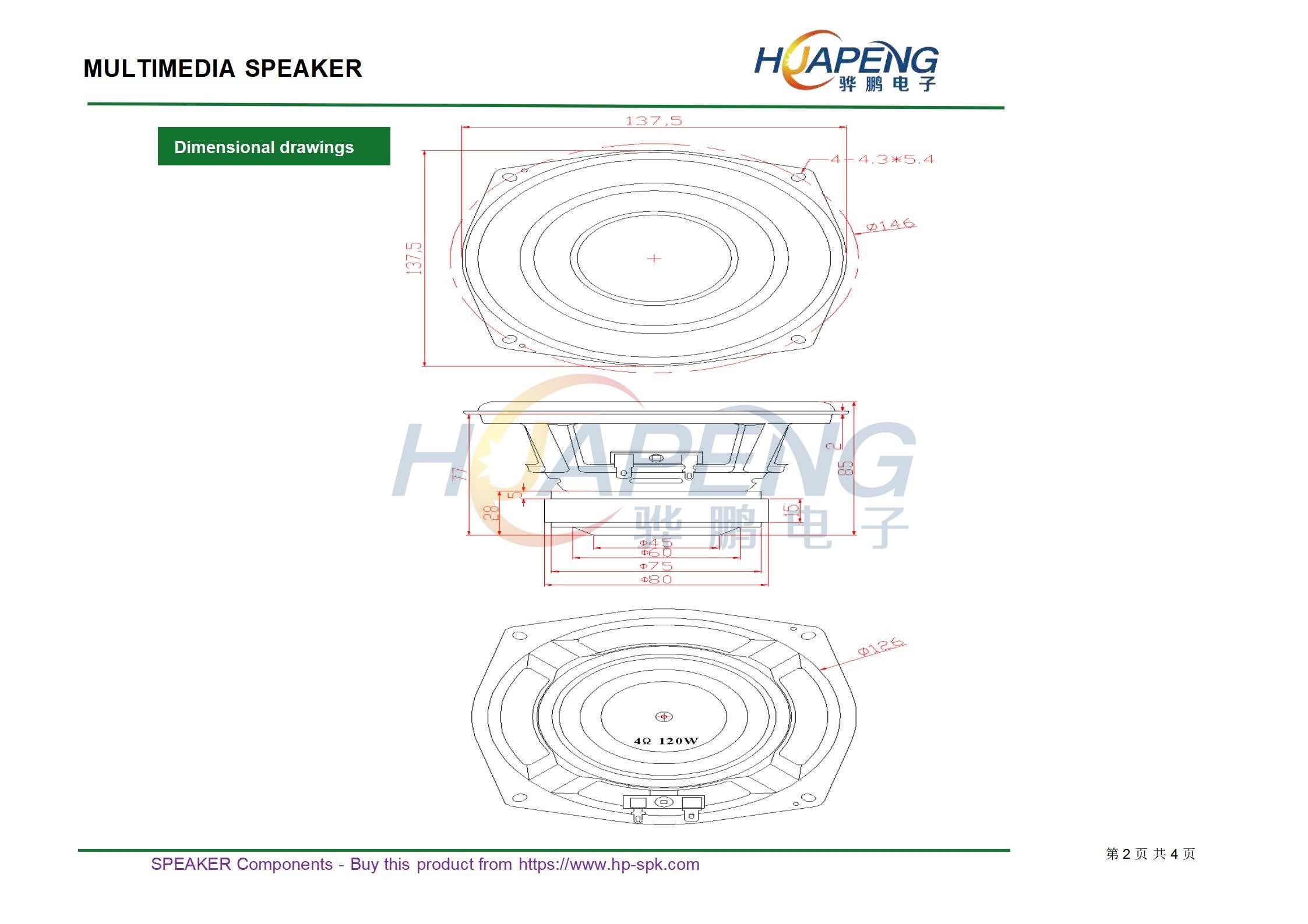 规格:3寸 方形81mmH52mm8Ω30W喇叭