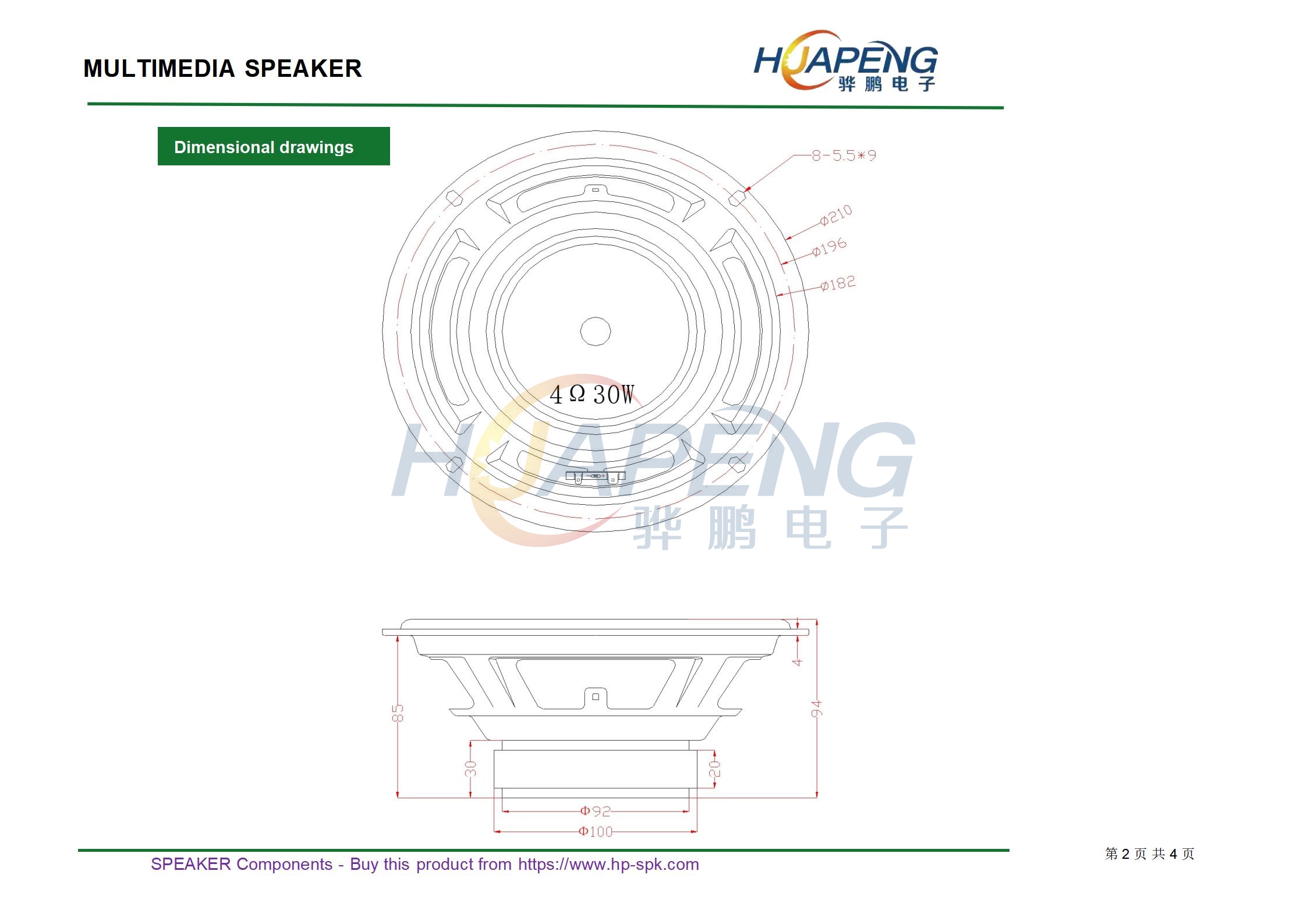 规格:5.25” 4Ω 15W泡盆喇叭