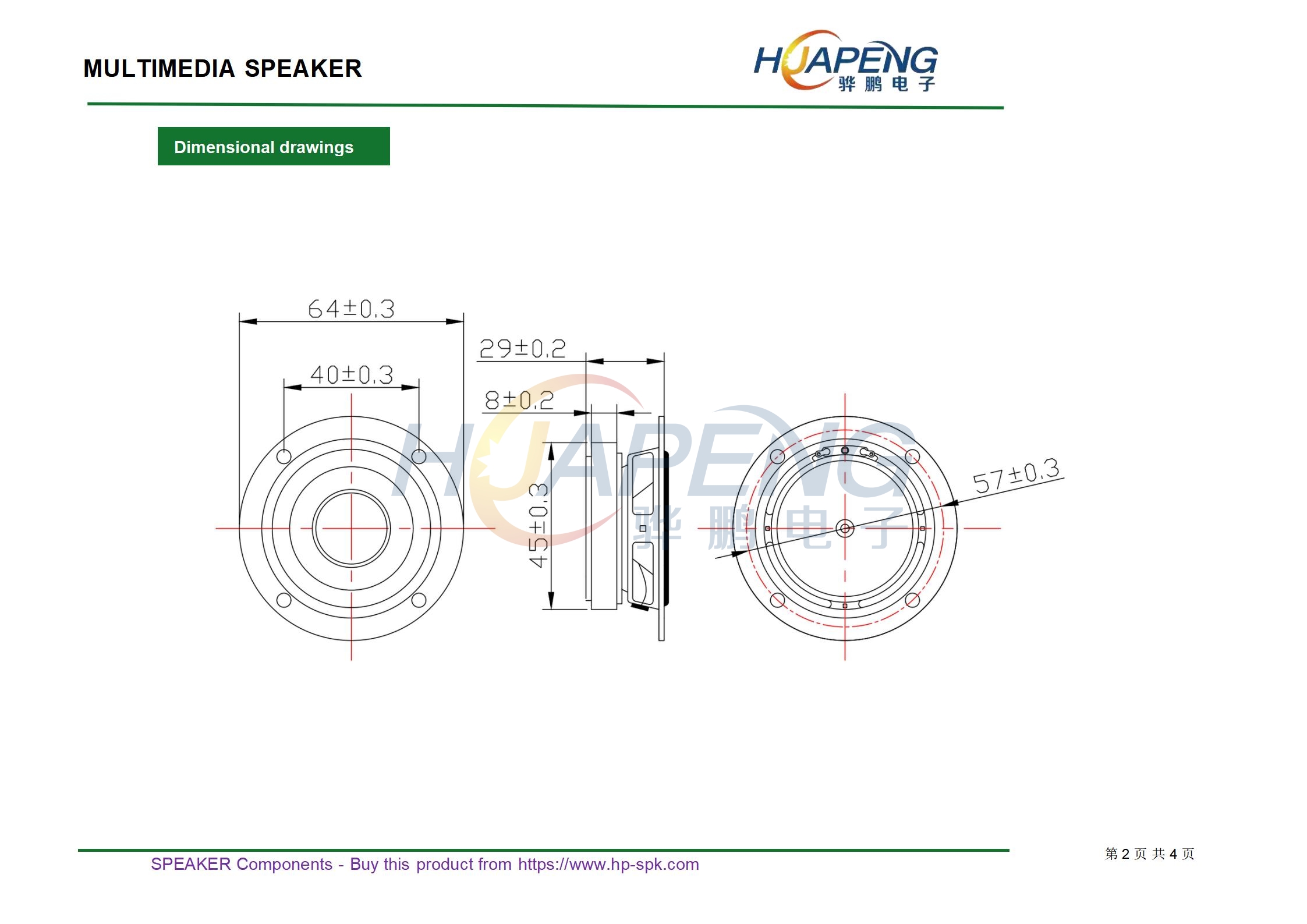 规格:方形40mmH21mm4Ω5W PU边双磁黑亮帽喇叭