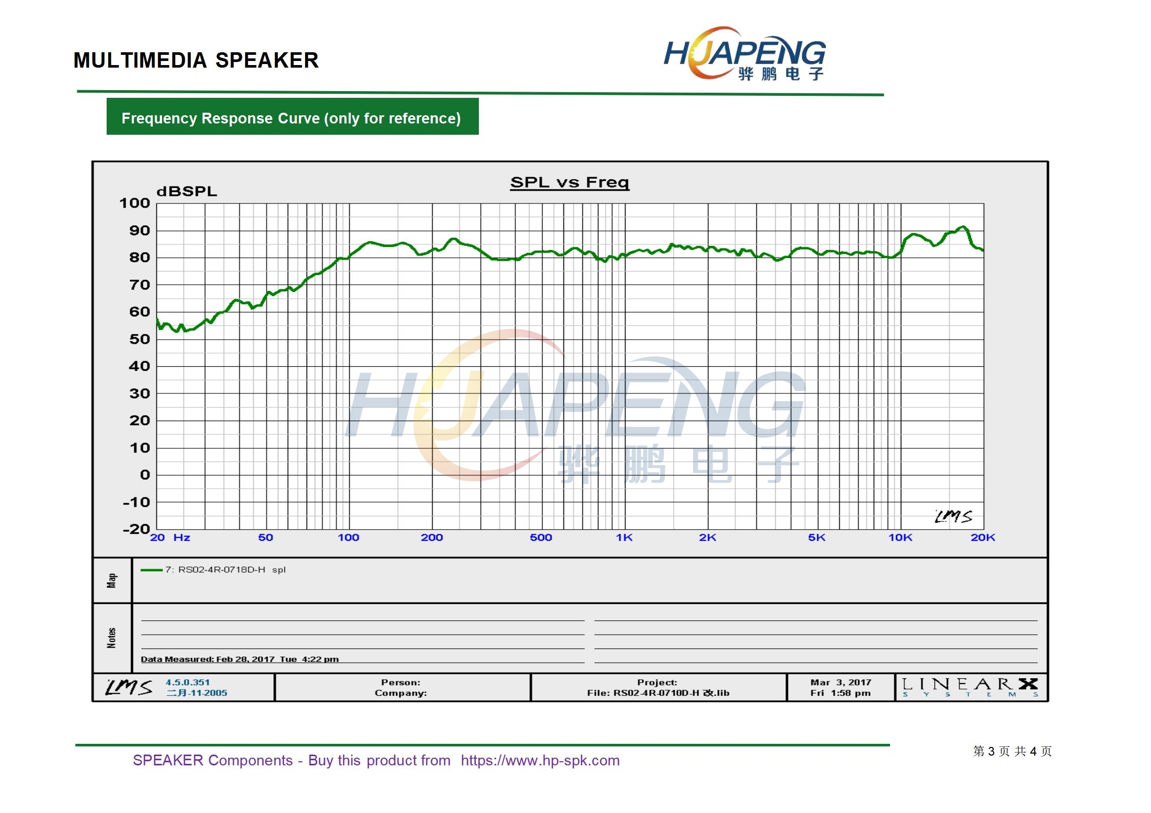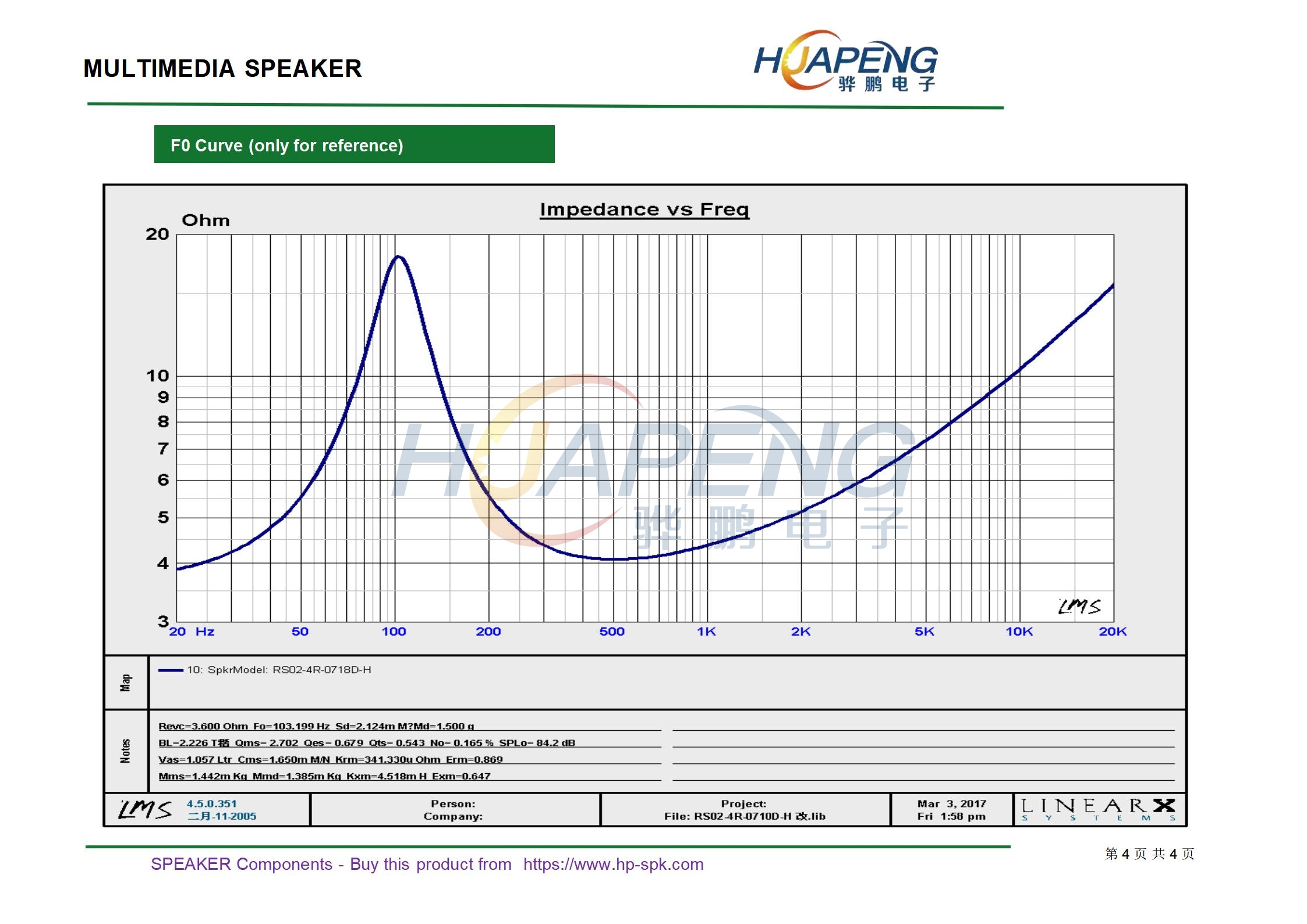 规格:3寸4Ω10W内磁喇叭