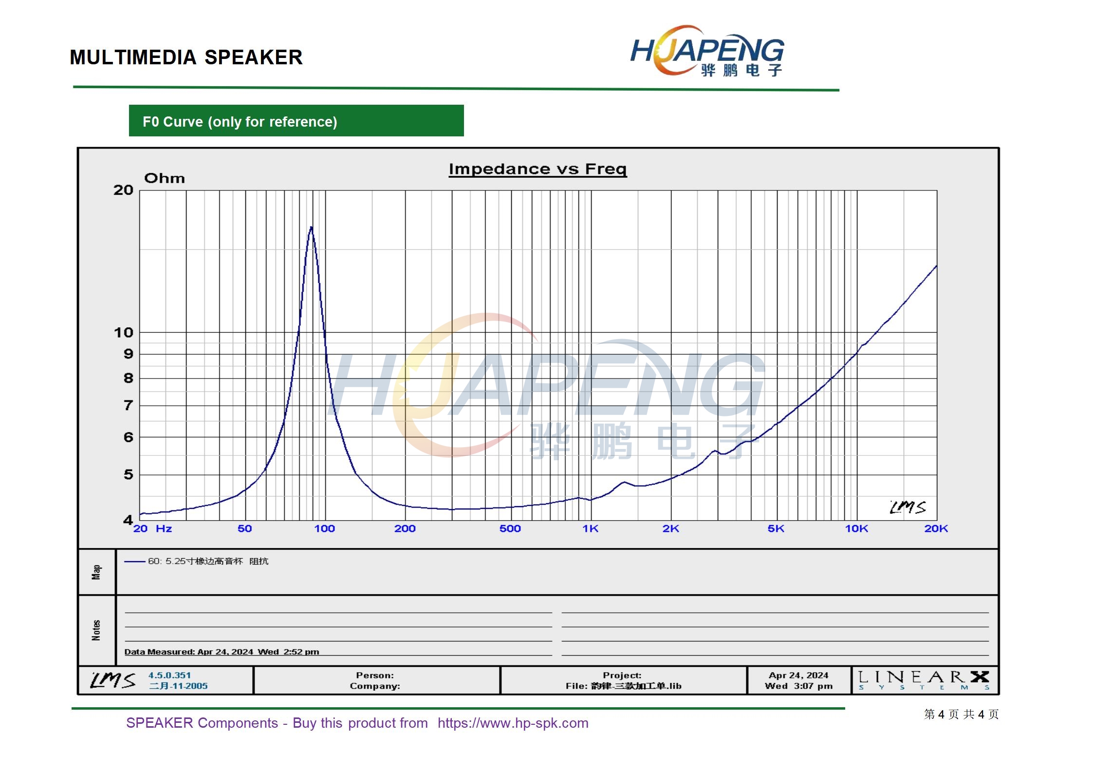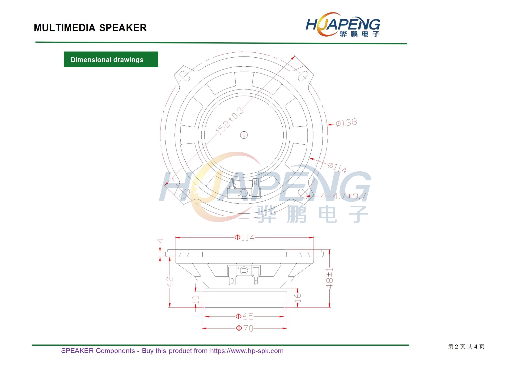 规格:4寸4Ω30W橡胶边松压鼓纸喇叭