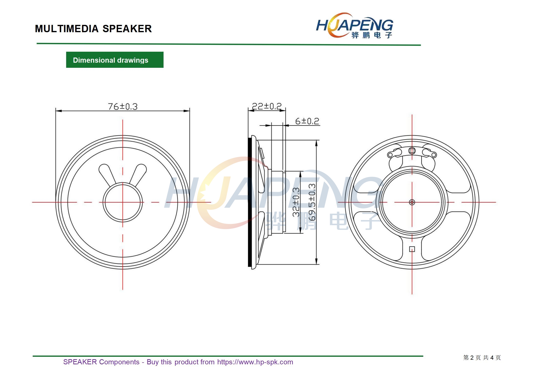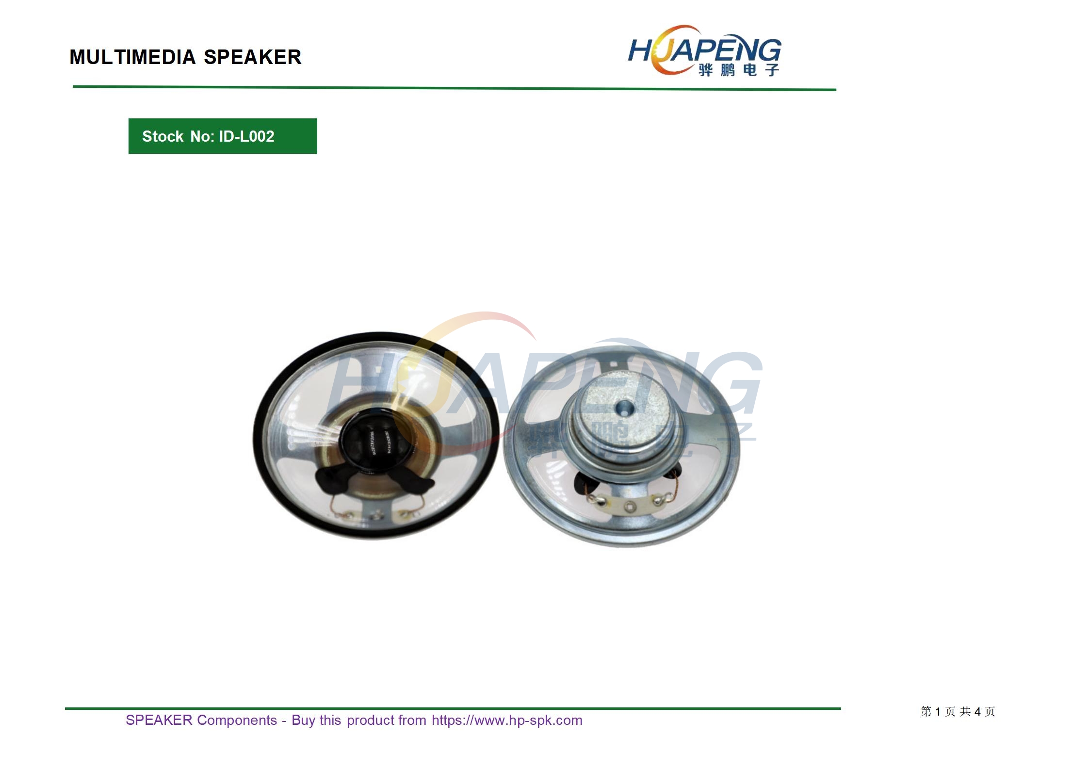 规格:Φ40mmH12.3mm4Ω2W内磁