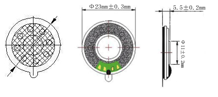 规格:φ23mmH5.0mm8Ω1W贴布内磁弧形膜